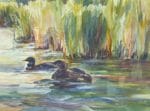 Boating around Pelican Lake in Minnesota, I have taken several pictures of this gazebo over the years. Then last summer I spotted two Adirondack chairs on top of a cliff overlooking the lake. What a fun place that must be to sit and visit. Visualizing myself in those chairs, several ideas generated sketches. First I considered a diptyci one with a gazebo and the other with two chairs. Then I thought about how two people could get there and started working in the 2 boats. Finally I chose to make it one long vertical painting with the chairs, the gazebo and the boats. It spikes one’s imagination!