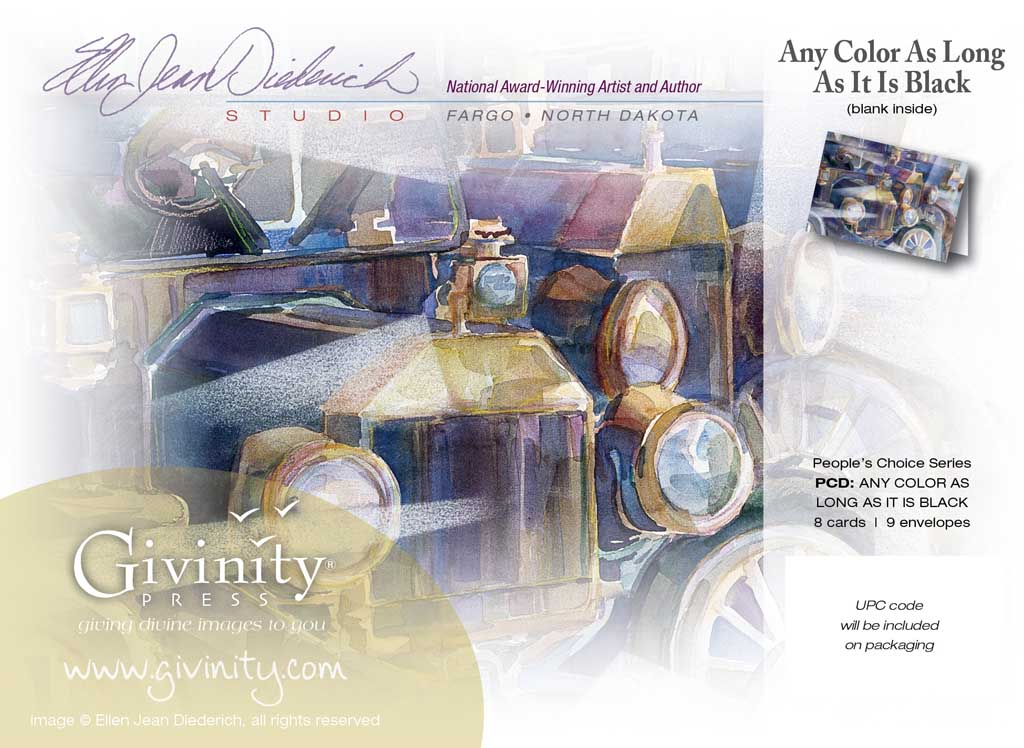These notecards are of Henry Ford’s Model T ‘s at his former home. I played of the black colors based on his thoughts “You can make cars any color as long as their black.” Great card to send to the Entrepreneur!