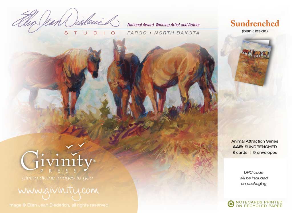 Notecards feature acrylic artwork of mares grazing with their foals.